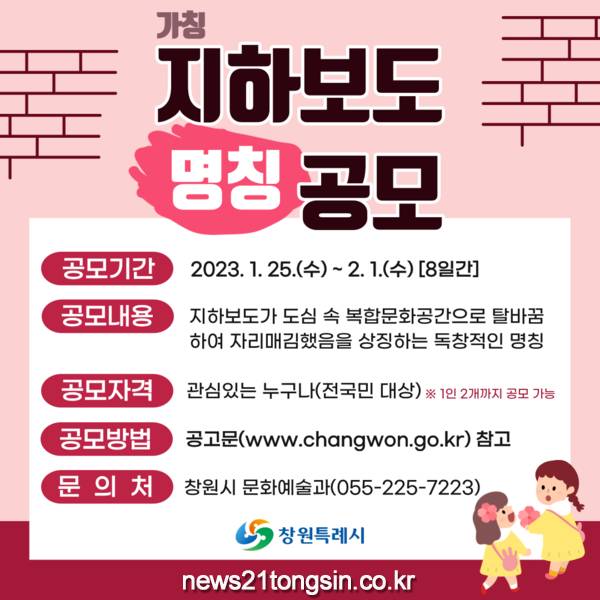 창원특례시(시장 홍남표)는 25일부터 2월 1일까지 창원종합운동장 지하보도 복합문화공간 명칭을 공모한다고 18일 밝혔다.
