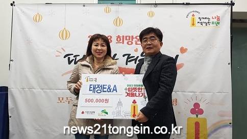 최우정 ㈜태정 E&A 대표이사는 “설 명절을 앞두고 코로나 장기화 및 경제불황 등으로 어려움을 겪고 있는 지역주민들에게 조금이나마 따뜻한 도움이 될 수 있기를 바란다”고 했다.