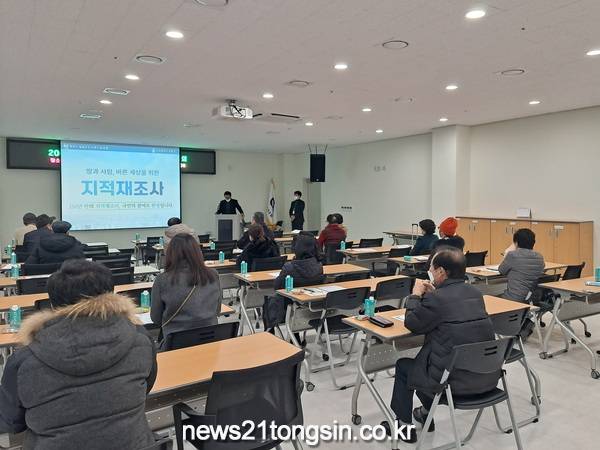 설명회에는 사업지구 내 토지소유자와 이해관계인 등이 참석했으며, 지적재조사사업의 추진 목적 및 사업지구 선정 이유, 사업의 추진 절차, 토지소유자 협조 사항 등을 설명하고 질의 응답하는 시간으로 이뤄졌다.