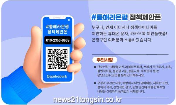서울 은평구(구청장 김미경)는 이달부터 누구든지 365일 어디서나 문자로 정책 제안할 수 있는 ‘#통해라은평’을 시행한다고 밝혔다.