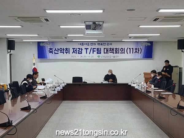 군위군 축산악취 저감 T/F팀(위원장 서진동)은 지난 26일 농업기술센터 소회의실에서 축산 관계 공무원들이 참석한 가운데 축산악취 저감 T/F팀 추진사항 및 향후 계획 수립을 위해 11차 회의를 개최했다.