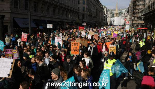 영국에서 교사, 공무원, 기관사 등 최대 50만명이 동시 파업에 들어갔다.