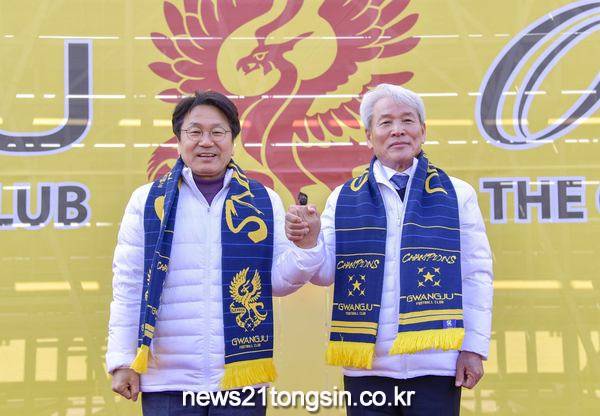 구단주인 강기정 광주시장은 “광주FC의 목표는 당연히 우승이겠지만, 우승 이전에 팬들로부터 열광적 사랑을 받아야 한다”며 “시민구단인 광주FC가 공동체의 단합과 기회‧성장의 광주를 만드는데 앞장서 주길 바란다”고 격려했다.