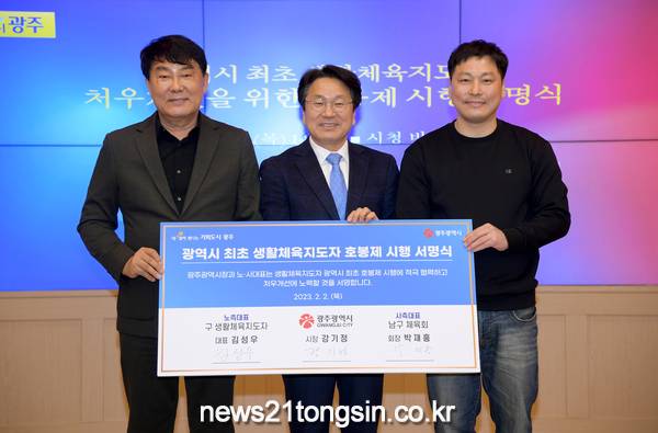광주시는 2일 시청 비즈니스룸에서 ‘생활체육지도자 호봉제 시행 서명식’을 개최했다.
