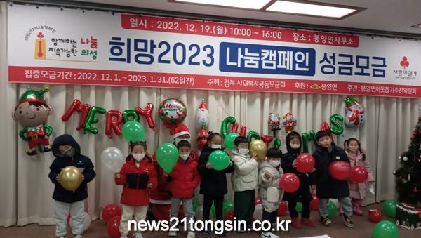 ‘희망2023 나눔캠페인’은 3년간 지속된 코로나19와 어려운 경기 침체로 인해 참여율이 저조할 것이라는 예상을 뒤엎고 각계각층의 뜨거운 참여로 진행됐다. 의성군은 예상 모금액의 240%가 넘는 성금을 모금했다. 이는 이웃의 어려움을 먼저 돌보고, 손을 내미는 군민들의 참여가 있었기에 가능했다.