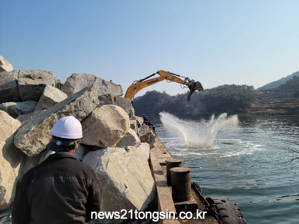창원특례시(시장 홍남표)는 마산합포구 옥계해역 0.4ha구간에 해조류의 부착 및 성장이 용이한 1루베급 규모의 자연석 2,074㎥(루베)를 투석한다고 7일 밝혔다.