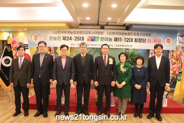 ㈔한국후계농업경영인김포시연합회와 (사)한국여성농업인김포시연합회는 지난 3일 김포시 북변동 소재 김포컨벤션웨딩홀에서 회장 이·취임식을 개최했다.