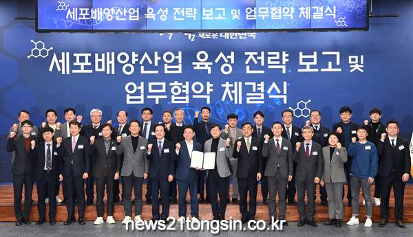 경북도는 7일 도청에서 포항·경산·구미시, 의성군, 영남대‧포스텍, 한국식품연구원, 경북․포항TP, 일동후디스, 네오크레마, 비전과학, 스페이스에프, 다나그린 등 28개 산·학·연·관과 업무협약을 체결하고, 세포배양산업 육성 전략을 발표했다.