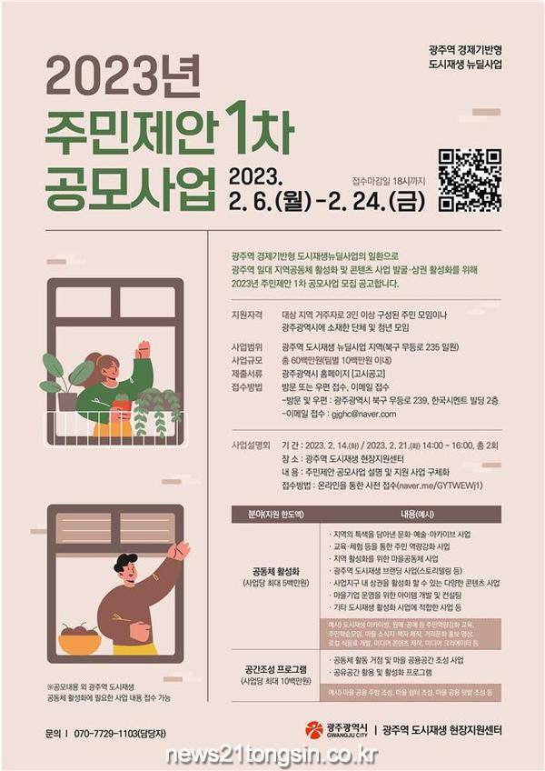 신청 자격은 광주역 사업권역 내 거주자로 3인 이상으로 구성된 주민모임이나 청년모임, 광주광역시에 소재한 단체이면 가능하다. 접수 기간은 오는 24일까지다.