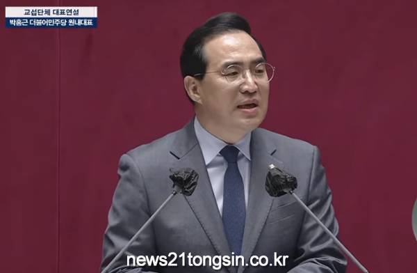 더불어민주당 박홍근 원내대표는 오늘(13일) 국회 교섭단체 대표연설에서 "대통령의 반지성주의가 대한민국을 위기에 몰아넣고 있다"며 윤석열 대통령과 정부를 비판했다. 또 "대통령 부인 김건희 여사의 주가조작 의혹에 관한 '국민 특검'을 반드시 관철하겠다"고 밝혔다.