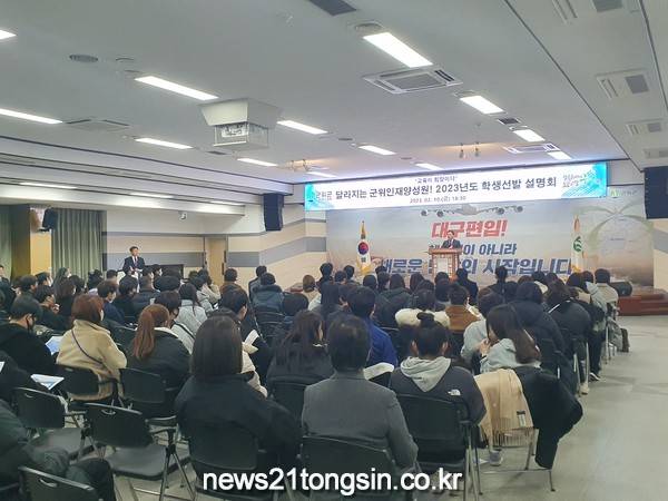 ▲ 군위인재양성원이 지난 10일 군위군청 3층 대회의실에서 군위인재양성원 학생선발 설명회를 개최하고 있다. 군위군 제공(사)군위군 교육발전위원회가 운영하는 군위인재양성원은 지난 10일 군위군청 3층 대회의실에서 ‘달라지는 군위인재양성원! 2023년 학생선발 설명회’를 개최했다.