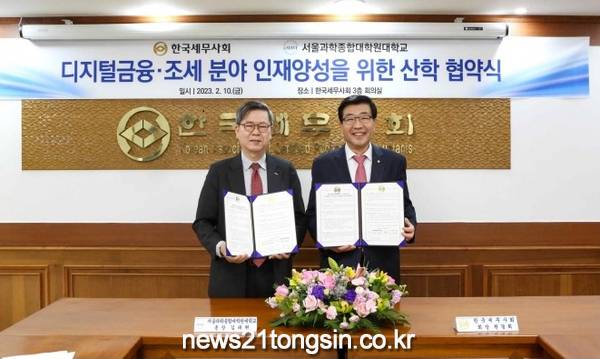 서울과학종합대학원대학교(총장 김태현)는 2월 10일 서울 서초동 세무사회관에서 한국세무사회(회장 원경희)와 디지털금융·조세 관련 분야의 전문인 양성과 세정·세법 분야의 정보·인력 교류을 위한 산학 협약을 체결했다고 13일 밝혔다.