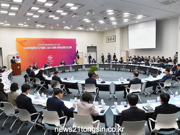 부산시(시장 박형준)는 오늘(14일) 오전 시청 1층 대회의실에서 박형준 시장 주재로 구청장․군수, 민간전문가 등이 참석한 가운데 ‘국제박람회기구(BIE) 현지실사 대비 준비상황 보고회’를 개최했다고 밝혔다.