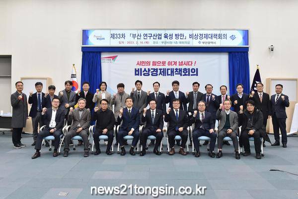 부산시(시장 박형준)는 오늘(16일) 오전 8시, 시청 1층 대회의실에서 연구개발 관련 유관기관․단체, 기업, 전문가들이 모인 가운데 「제33차 비상경제대책회의」를 개최하여 부산의 연구산업 육성방안에 대해서 논의했다고 밝혔다.