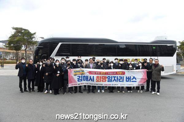 김해시 희망일자리버스는 구직자가 지역 우수기업을 방문해 현장면접을 보고 취업으로 직행하는 새로운 일자리 프로그램으로 대학생, 청년, 중장년 등 월별 테마를 정해 매월 셋째 주 수요일 오후 2시 대성동고분군 주차장에서 정기적으로 운행한다.