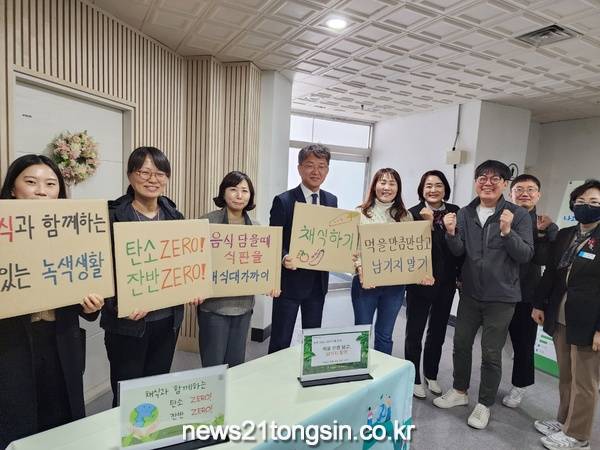 또한, 시는 채식의 날 확대를 기념하고 밥상의 탄소중립 실현을 위해 구내식당 입구에서 ‘채식과 함께하는 맛있는 녹색생활, 탄소 ZERO! 잔반 ZERO!’ 캠페인을 시행하였다. 채식만큼 중요한 잔반 ZERO 식당을 만들기 위해 ▲먹을 만큼만 담고, 남기지 말기 ▲음식을 담을 때 식판을 배식대 가까이 하기 ▲휴지는 1장만 사용하기를 홍보하고 직원들의 참여를 이끌었다.