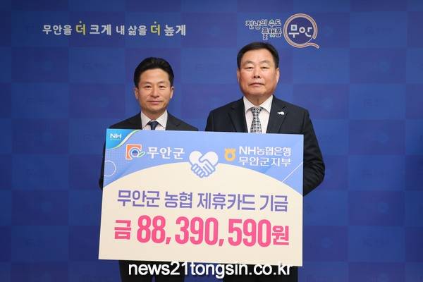 전남 무안군과 NH농협은행은 3월 7일 무안군수실에서 2022년도 제휴카드 적립 기금 8,840만 원 전달식을 진행했다.