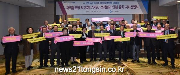 인천광역시 시민원로회의(의장 심정구) 위원 50인이 재외동포청 인천 설립과 제32차 아시아·태평양경제협력체(APEC)정상회의 인천 개최를 전폭적으로 지지한다고 밝혔다.