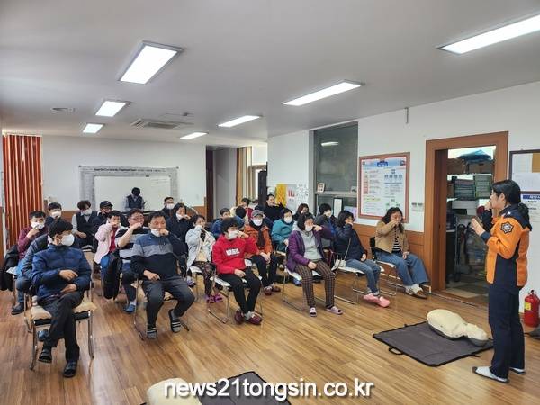 이날 교육에서는 화재 시 대피방법 및 119 신고방법, 심폐소생술 소생 사례를 통한 심폐소생술의 중요성을 알아보고 심폐소생술 및 자동심장충격기 실습 교육 등으로 진행되었다.