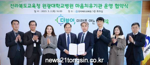 지난 2일 원광대학교병원(병원장 서일영)과 전라북도교육청 원광대 병원형위(Wee)센터 및 마음건강증진거점센터가 전라북도 내 아동·청소년들의 정신건강 증진과 관련한 마음치유기관 재위탁을 위한 업무협약을 체결하였다.