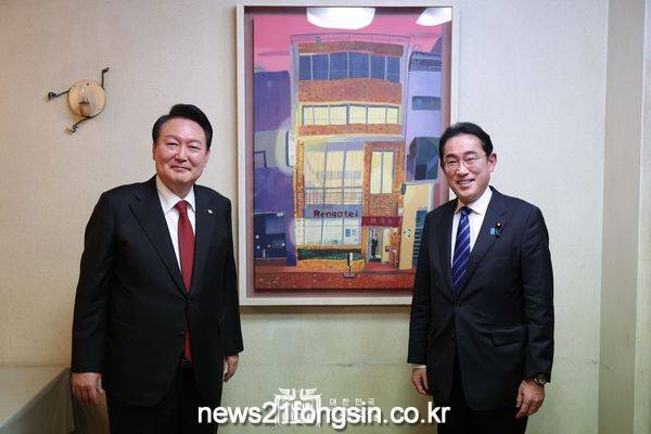 윤 대통령은 오늘 오전 일본 도쿄에서 한일의원연맹과 한일친선협회중앙회 등 한일 친선 단체 정계 인사들을 접견했다. 이 자리에는 아소 다로, 스가 요시히데 일본 전직 총리도 참석했다.