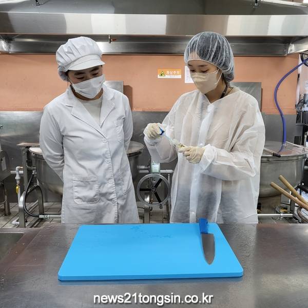 20일 동부교육지원청에 따르면 이번 검사는 식중독 예방은 물론 안전하고 위생적인 급식 제공을 위해 학교 급식시설의 위생 상태 평가를 중심으로 시행된다. 검사는 불시에 학교 방문 후 사용 빈도가 높은 행주, 도마, 칼 등의 조리도구와 음용수에서 담당 공무원이 직접 검사물을 채취하는 방식으로 이뤄진다. 이후 검사물을 광주보건환경연구원으로 보내 식중독 원인균인 대장균과 살모넬라균 등의 검출 여부로 적합·부적합을 판단한다.