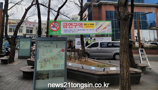 마포구(구청장 박강수)가 마포역 3번 출구 10미터 이내 금연구역을 인근 녹지공간과 보행로까지 포함한 350㎡로 확대 지정했다.