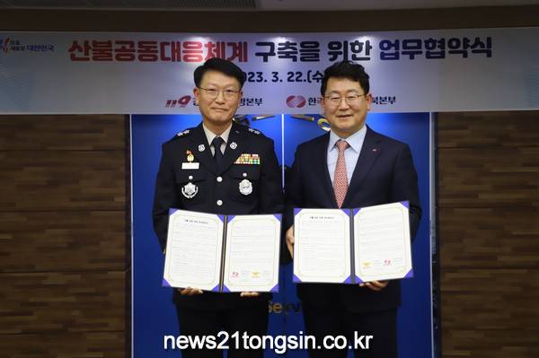 경상북도 소방본부는 한국전력 경북본부와 지난 22일 경북도청 119작전회의실에서 ‘산불 공동대응체계 구축을 위한 업무협약’을 체결했다.