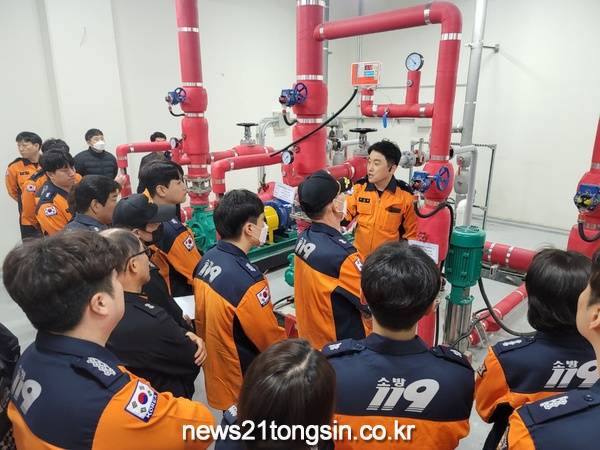 대전유성소방서는 22일 유성구 용산동 소재 신축아파트 공사장에서 소방대원 100여 명을 대상으로 소방시설 완공검사 실무 특별교육을 실시했다.