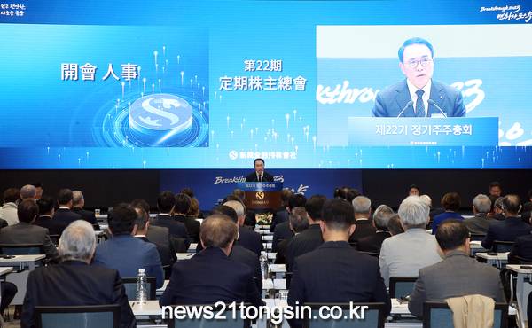 신한금융지주회사(회장 조용병)가 23일 오전 10시 서울시 중구 세종대로에 위치한 본사에서 제22기 정기주주총회와 임시 이사회를 개최하고 주요 안건인 재무제표 결산 및 이사 선임의 건을 승인했다.