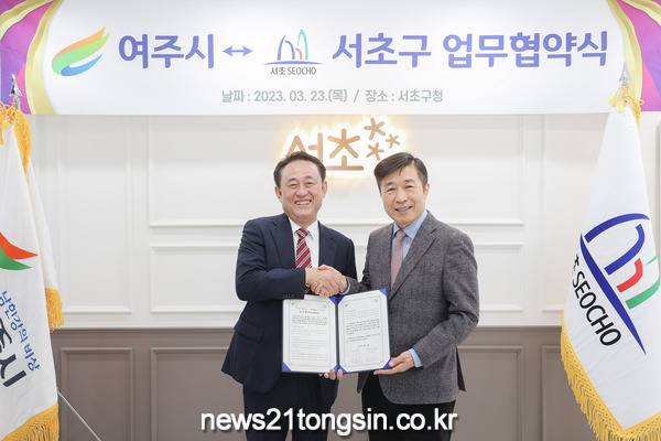 여주시(시장 이충우)는 서울시 서초구와 교류협력을 위한 업무협약(MOU)를 맺었다고 밝혔다. 지난 23일 11시, 서초구청 구청장실에서 열린 이날 협약식에는 전성수 서초구청장을 비롯한 양 지자체 담당 공무원이 참석했다.