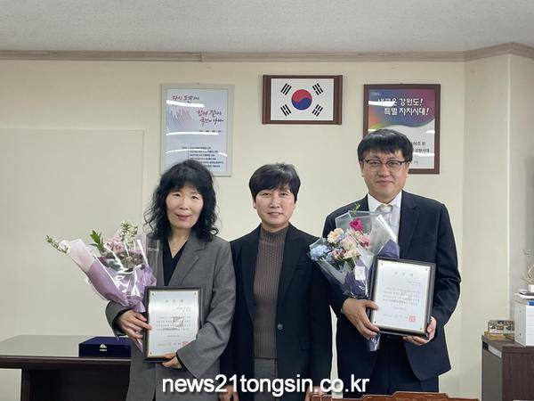 강원도는 23일 공무원교육원 원장실에서「2022년도 우수강사 수여식」을 개최, 우수강사로 선정된 3명에게 표창패와 꽃다발을 수여하고 축하하는 자리를 가졌다고 밝혔다.