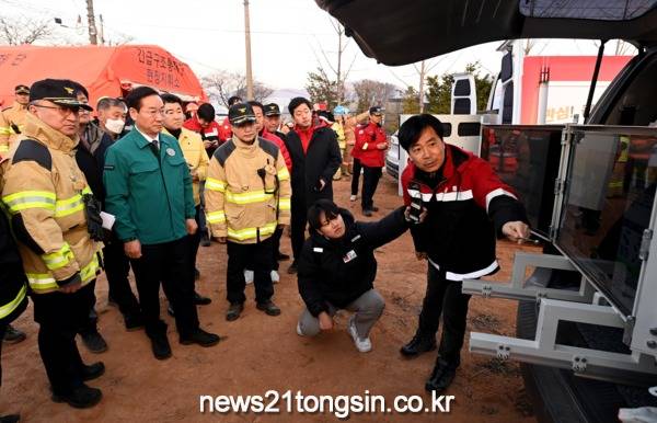 이어 “이른 아침부터 산불 진화와 뒷불 감시를 위해 많은 인력이 산에 올랐는데, 마니산은 암벽이 많아 위험한 만큼 무엇보다 안전하게 진화 작업이 이뤄지도록 만전을 기해달라”고 당부했다.