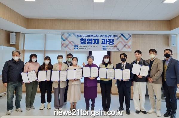 뉴스21통신전북/김문기기자=정읍시는 지난 26일 청춘활력소(연지3길 189-4)에서 도시재생 뉴딜사업 상권 활성화 컨설팅 ‘창업자 과정’을 모두 마치고 수료식을 진행했다.
