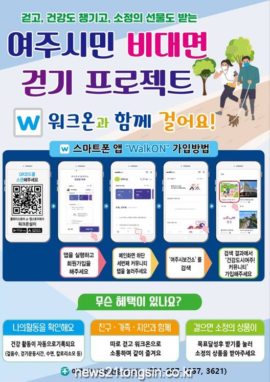 여주시보건소(소장 최영성)는 여주시민의 걷기 생활화를 위해 모바일 건강관리 플랫폼 워크온을 오는 4월 3일부터 운영한다고 밝혔다.