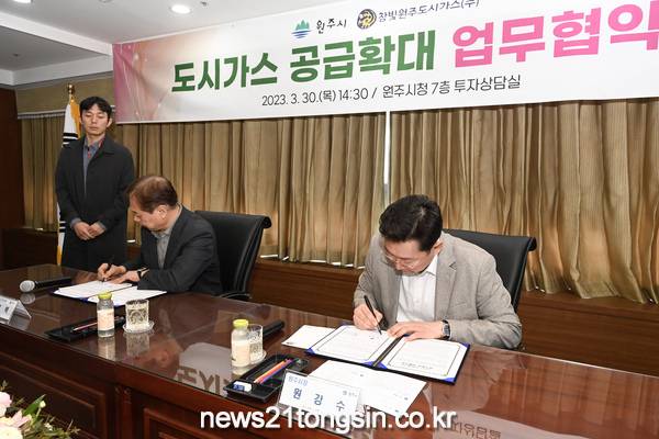 원주시는 도시가스 미공급 지역 공급 확대를 위해 30일 참빛원주도시가스(주)와 업무협약을 체결했다.
