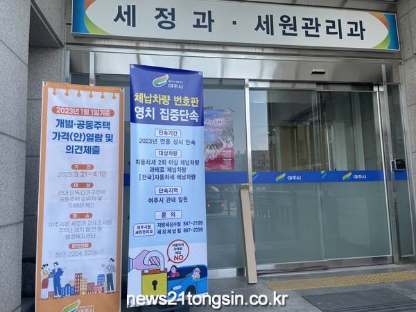 여주시(시장 이충우)는 3월 초부터 자동차세 또는 과태료 체납액을 최소화하고 상습·고질적인 체납차량 근절을 위해 체납차량 번호판 영치 상시 단속에 총력을 기울이고 있다.