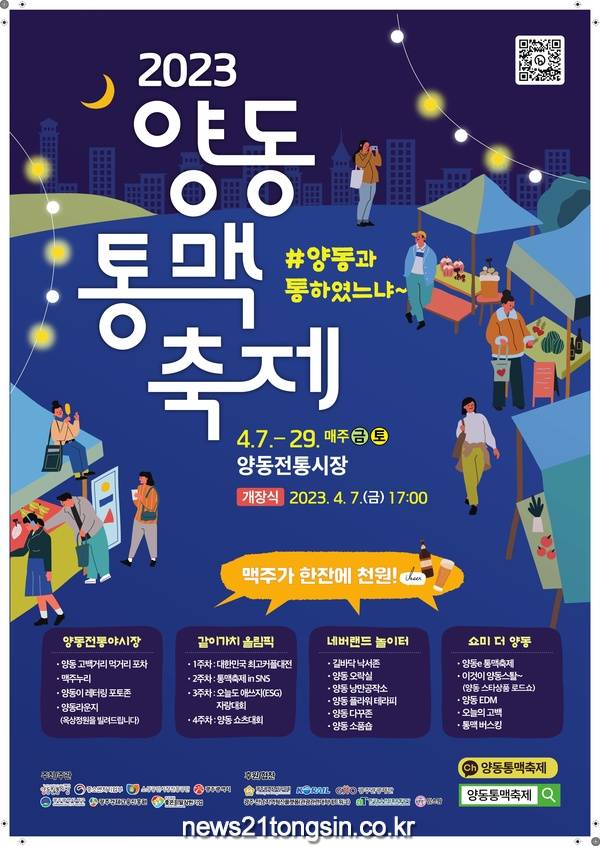 “양동과_통해_보겠느냐!”는 주제로 열리는 「양동통맥축제」가 7일 오후 5시에 개장식을 갖고 4월 한달간 매주 금, 토 16~22시까지 야시장 형태로 운영된다.
