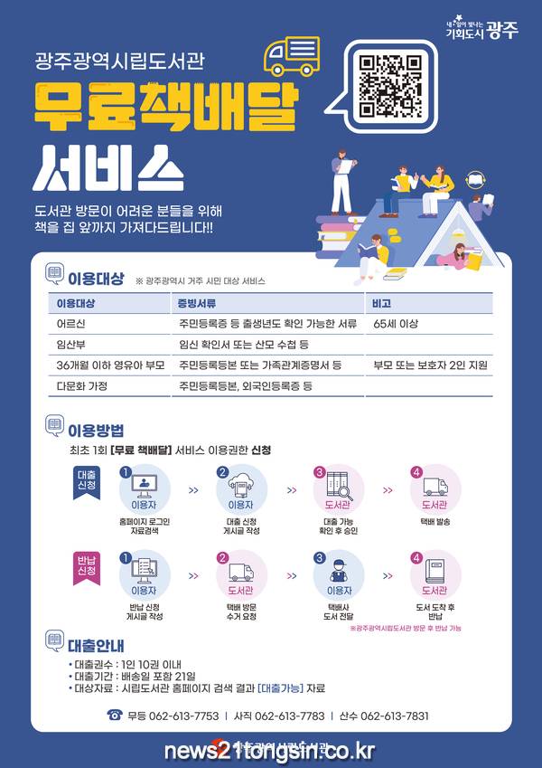 광주광역시립도서관(무등·사직·산수)은 도서관 방문이 어려운 이용자들이 환경에 구애받지 않고 지속적으로 독서활동을 할 수 있도록 책배달서비스를 운영한다.