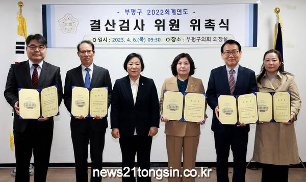 부평구의회(의장 홍순옥)는 4월 6일, 2022회계연도 결산검사 위원을 위촉하고 위촉장을 전달했다.