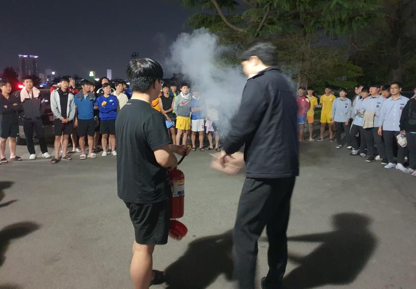 10일 시교육청에 따르면 이번 훈련은 지역의 소방관서 및 119안전센터와 합동으로 실시하는 기숙사 화재대피 훈련이다. 야간 학생들의 취침 상황에서 발생한 화재 상황을 가정한 훈련으로 화재 발생 시 학생들의 즉각적인 대응 능력을 높이기 위해서다.