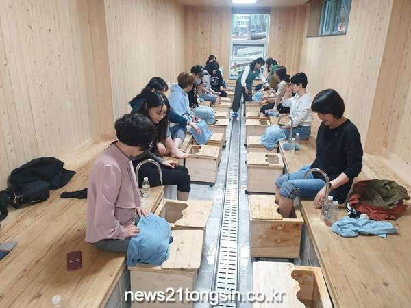 팸투어 첫날 참가자들은 창원의 대표 산림관광 명소인 편백 치유의 숲 치유센터에 들러 스트레스 완화와 심신 건강 증진을 위한 체험 활동을 했다. 스트레스 지수와 혈관 나이를 측정하고, 산림치유지도사를 따라 편백숲을 거닐었다. 족욕과 명상, 비누 만들기 체험 등으로 일상을 벗어난 휴식의 시간을 가졌다.