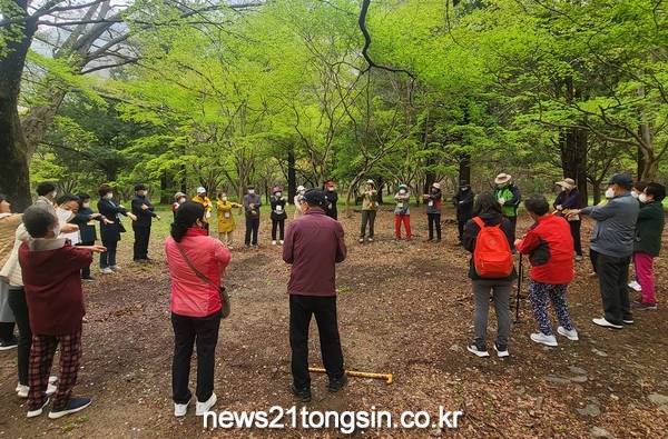 프로그램은 숲 해설사의 진행에 따라 내장산 알아보기, 오감 산책, 케이블카 전경 관람, 솔티마을 모시떡 만들기 체험 등으로 진행됐다.