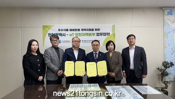 인천광역시(시장 유정복)는 12일 인천시청에서 한국농수산식품유통공사(aT)인천지역본부와 관내 우수식품제조업체의 국내․외 판로개척 사업 공동 추진을 위한 업무협약을 체결했다고 밝혔다.