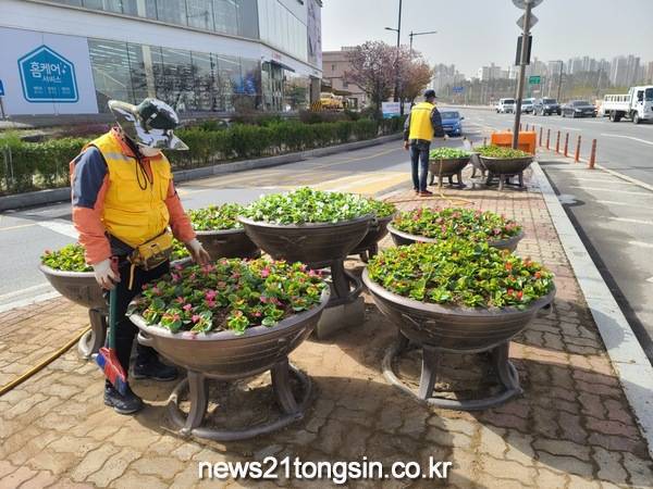 여주시 여흥동행정복지센터(동장 박창주)는 관내 주요 도로변에 꽃심기를 실시하여 밝고 생동감있는 시가지를 조성하고 있다.