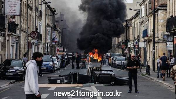 프랑스 텔레비지옹 등 현지 방송은 이 쓰레기통 무더기가 오후 행진을 앞둔 시위대가 쌓아둔 것이라고 보도했다.