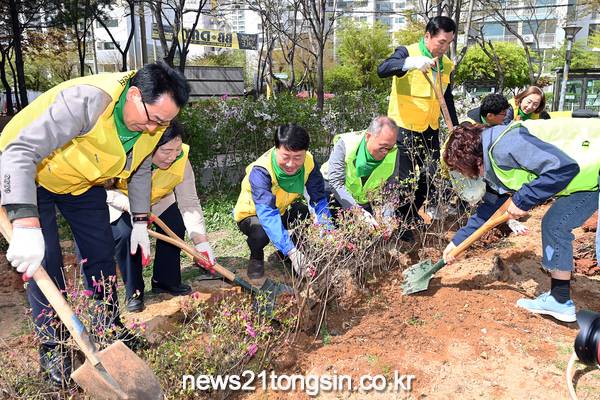 12일에는 차준택 구청장과 자원봉사자 70여 명이 참여해 마장공원에 영산홍과 수수꽃다리 450그루를 심었다.