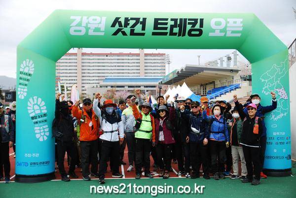 강원도관광재단(대표이사 강옥희)은 ‘강원 샷건 트레킹 인증 챌린지’ 사업의 일환으로 개최되는「강원 샷건 트레킹 오픈」행사의 첫 시작을 4월15일(토)에 양구군 종합운동장에서 진행하여 성황리에 종료했다. 이날 행사에 참석한 서흥원 양구군수는 환영 인사에서 “국토정중앙 청정 양구에서 좋은 추억을 많이 만들어 가시길 바란다”는 응원의 메시지를 참가자들에게 전달하였다.