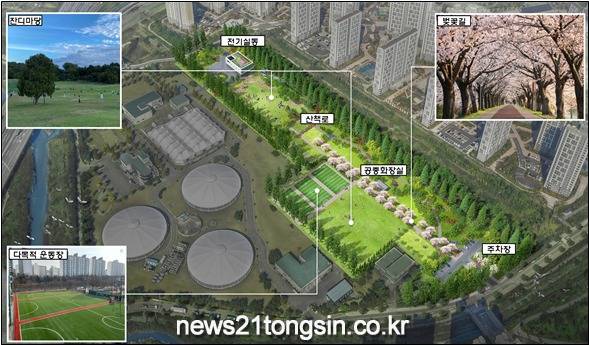 특히, 증설면적 4만2천㎡ 들어서는 하수처리시설은 완전지하화될 예정인데, 상부공간 중 축구장 4개 크기의 면적은 잔디마당, 산책로 등 시민 편의시설로 조성된다.