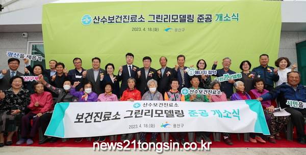 광주 광산구가 농촌동 주민의 건강을 책임지고 있는 보건진료소의 탄소 배출은 줄이고, 에너지 효율은 높이는 ‘그린리모델링’ 사업을 완료하고, 18일 산수보건진료소에서 준공 개소식을 개최했다.